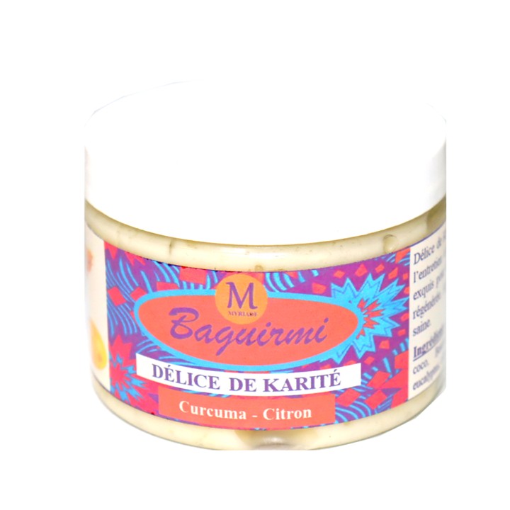 Ingredients : Beurre de karité ,Beurre d'Avocat, Huile de Coco, Parfumé et enrichi au Curcuma et Citron